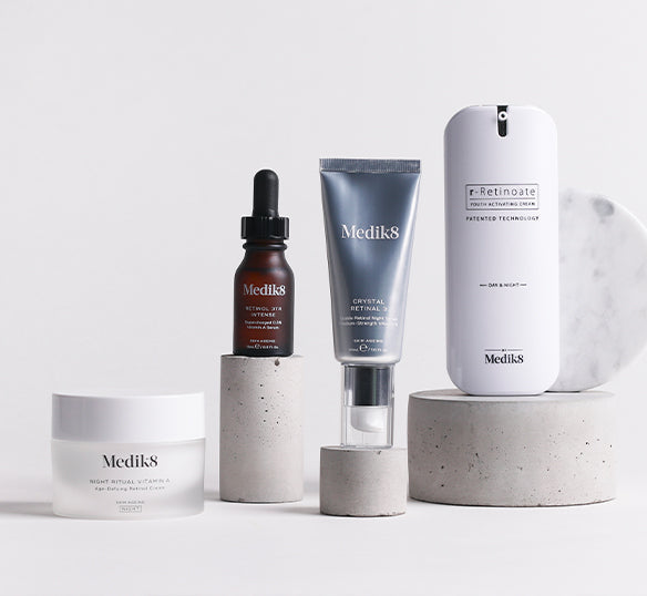 A-vitamiinin (eli retinoli), asiantuntijana Medik8 on kehittänyt useita yövoiteita ja seerumeita, jotka elävöittävät ja nuorentavat ihoa nukkuessasi. A-vitamiini on kaikista tärkein raaka-aine anti-ageing tuotteissa. Sillä on useita ihoa hyödyttäviä ominaisuuksia, kuten ihosolujen uusiutumisen nopeuttaminen ja talin erityksen vähentäminen. On kuitenkin tärkeää, että A-vitamiini on stabiloitu ja että sen vapautuminen on kontrolloitua. Näin optimoidaan sen tehokkuus ilman ihoärsytystä. Lisätietoa A-vitamiinin vaikutuksesta iholla saat A-vitamiinin asiantuntijat.