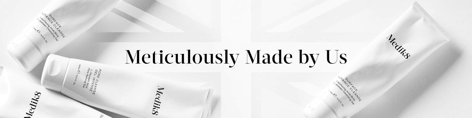 Me Medik8:lla olemme ylpeitä siitä, että luomme ja valmistamme kaiken itse. Olemme ihonhoidon huipputuoteteknologioiden edelläkävijöitä; monet niistä ovat patentoituja ja ainutlaatuisia meille. Tuotteemme ovat todellista mittatilaustyötä; niitä suunnittelevat sisäiset formulaatiokehittelijämme ja -tutkijamme, jotka kuratoivat ja kokeilevat monimutkaisia ainutlaatuisia ainesosayhdistelmiä sekä uusimpia teknologioita parhaan mahdollisen kokemuksen ja tulosten tuottamiseksi; jotta sinun ei tarvitse koskaan tehdä kompromisseja.
