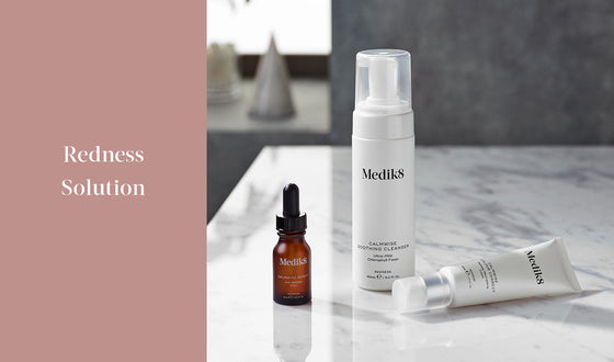 Medik8 lähestymistapa punoittavaan ihoon on erilainen. Punoitukseen suunnattu ihonhoitosarjamme pyrkii sekä peittämään punoitusta että hoitamaan sen perimmäistä syytä: vahvistamalla ihon omaa luonnollista suojaa sekä rauhoittamalla tulehduksia.